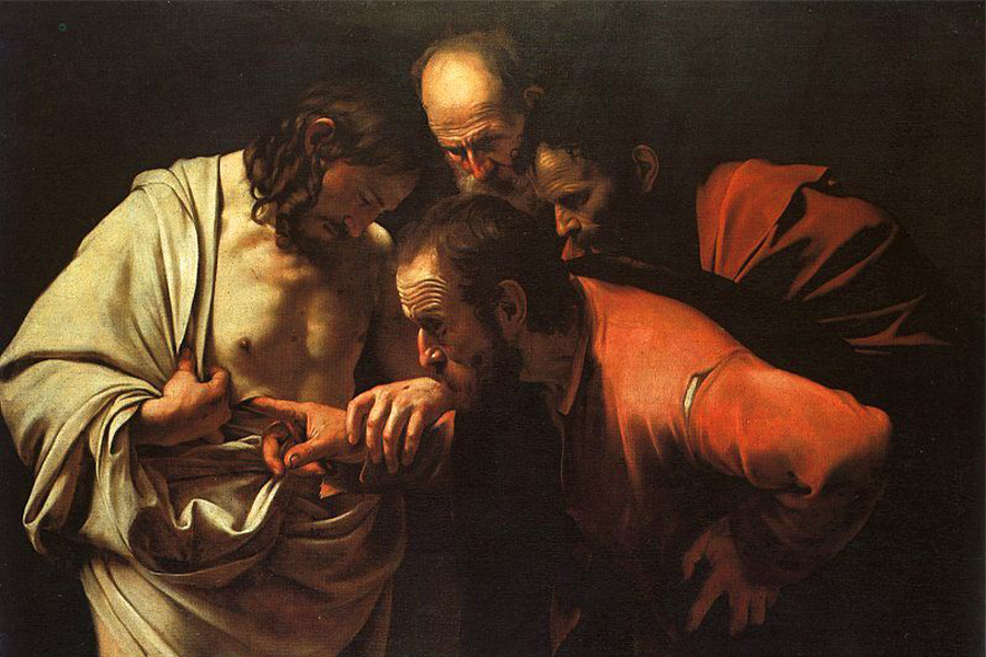 Defiant Thomas. Doubtung, to be sure, but also defiant in his refusal to believe. Just imagine ten close friends all telling you the same story. But you don’t believe it. You insist on seeing for yourself. Certainly this was an incredible phenomenon—someone returning from the dead—but your closest friends all insist they saw him in the flesh. Is that not enough? Not for Thomas. He insists that he needs to touch Jesus’ wounds to convince himself that he’s not just seeing things. So he shows up the following week, skeptical, but curious. When Jesus returns, just seeing him and hearing his voice brings Thomas to confess Jesus’ presence and divinity in the boldest possible terms: “My Lord and my God!” (John 20:28). Defiant Thomas defiant no longer. He cannot deny the truth standing in front of him. We all have a bit of Thomas in us. Skeptical, even in the face of eyewitness testimony, perhaps even defiant in our disbelief. But just as for Thomas, our doubts can be overcome. But we have to be willing to look again.