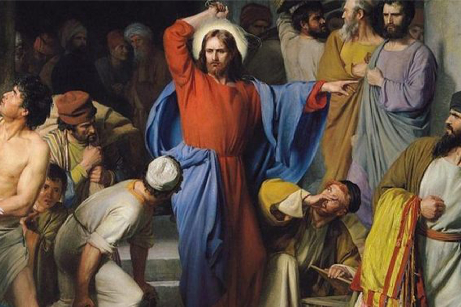 La práctica de emplear cambitas en los recintos del templo tenía sentido. Con la Pascua cerca, muchos peregrinos viajaron durante días, contando con pagar a los comerciantes en el área del templo por los animales necesarios para el sacrificio. Las monedas del Imperio Romano llevaban la imagen de César o de dioses paganos, por lo que era necesario cambiar dinero. Pero la presencia de Jesús pone todo esto en una nueva perspectiva. No es necesario sacrificar ovejas ni palomas; se vuelven obsoletos por el propio sacrificio de Jesús. El templo, signo de la presencia de Dios en ella en la tierra, es suplantado por la presencia del propio Hijo de Dios. No se trata de rechazar al primero; es que Jesús es el cumplimiento de cada uno. Pero Jesús no lo presenta de esta manera, sino que dice cosas como: “Destruyan este templo y en tres días lo reconstruiré”, lo que lleva a las autoridades a creer que está loco, o peor aún, que es peligroso (Juan 2:19). Sus palabras crean una “piedra de tropiezo” para los creyentes, horrorizados por su sugerencia, y una “locura” para los de afuera, que la ven como ridícula (1 Corintios 1:23). Aceptar su cruz no fue ni tonto ni débil, sino una señal de sabiduría y fuerza, que nos levantó a todos con la promesa de vencer el pecado y la muerte.