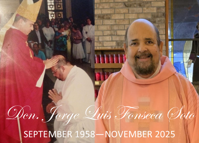 With deep sadness, we announce the passing of Deacon Jorge Luis Fonseca Soto. Please join us as we honor his life and entrust his soul to the Lord.